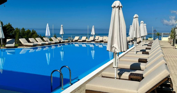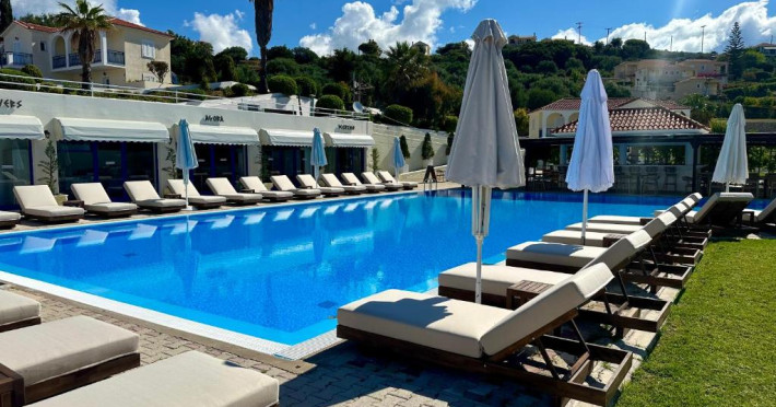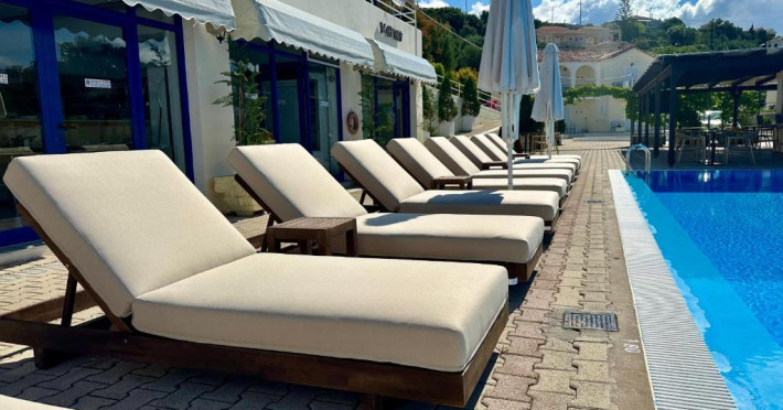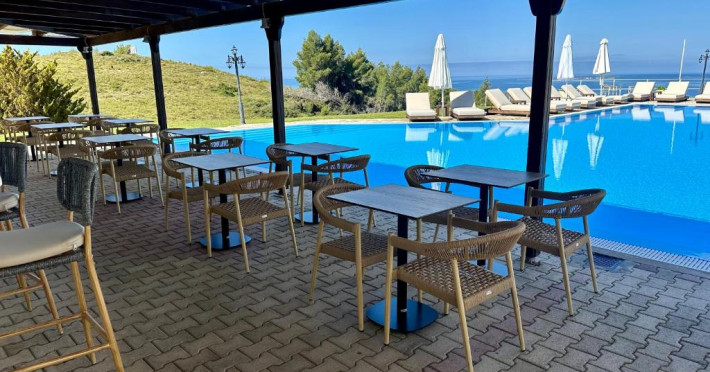 Restaurantul proprietății servește preparate din bucătăria grecească. Săptămanal sunt găzduite seri speciale de grătar cu muzică și un bufet variat cu grătare, paste și salate.