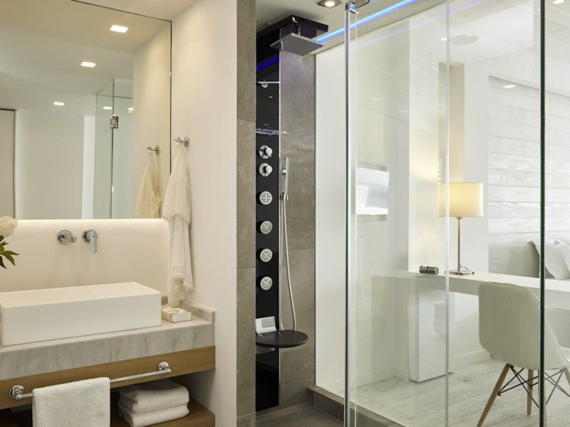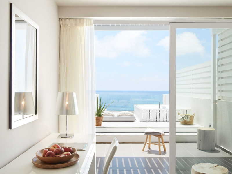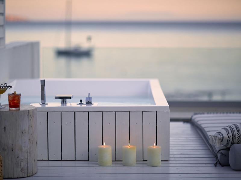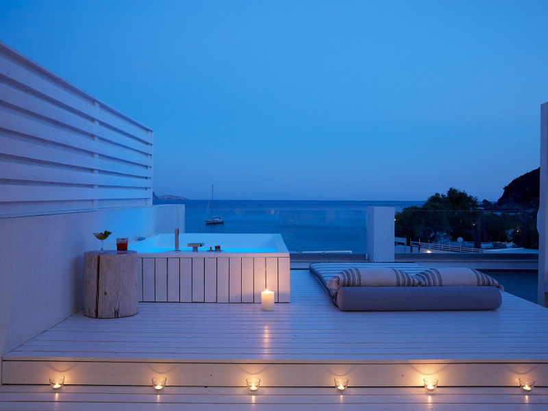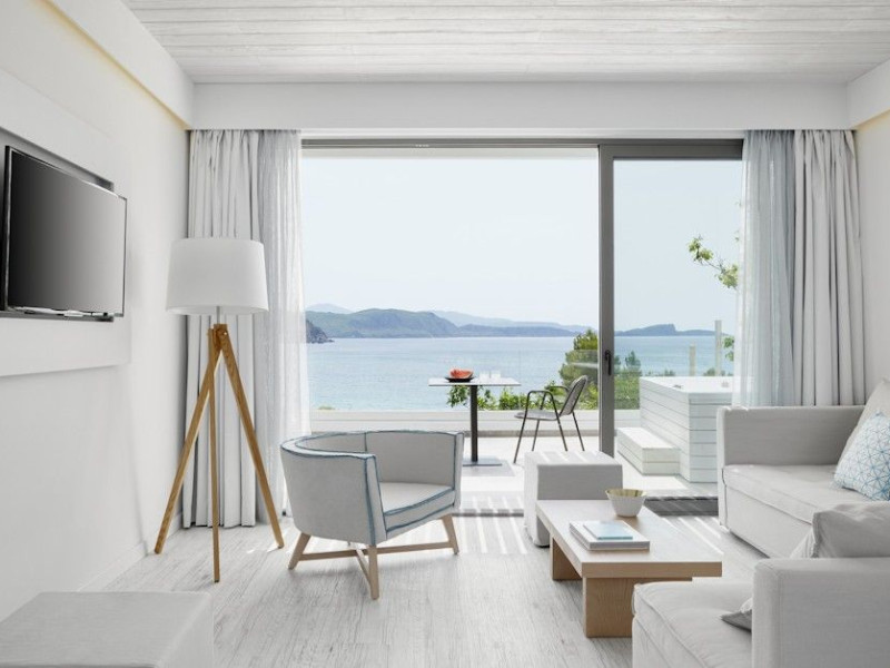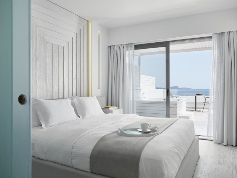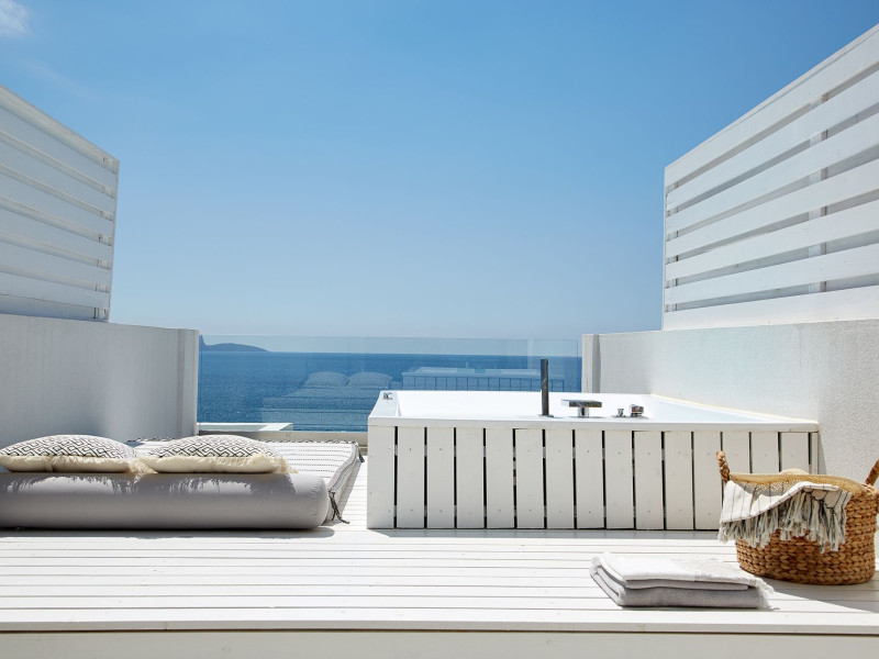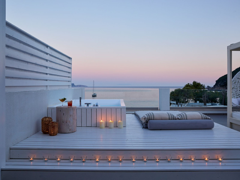 - One Honeymoon Junior Suite - Outdoor Jacuzzi + One Lichnos Luxury Junior Suite - Outdoor Jacuzzi the can accommodate up to 7 (4 adults + 3 Childs a interior space of 85 square meters