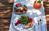 - Omletă vegetală cu 3 ouă (feta, ciuperci, piper, roșii)