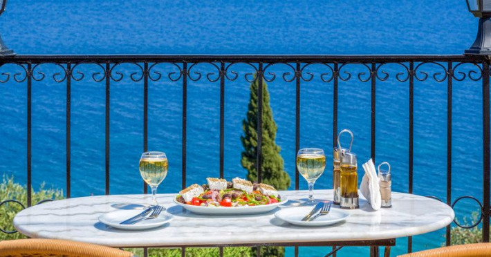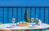 A buffet breakfast is included in the room rate and during the summer this is served on the terrace. The restaurant is also open during the day and serves a good selection of Mediterranean dishes including many local specialities.