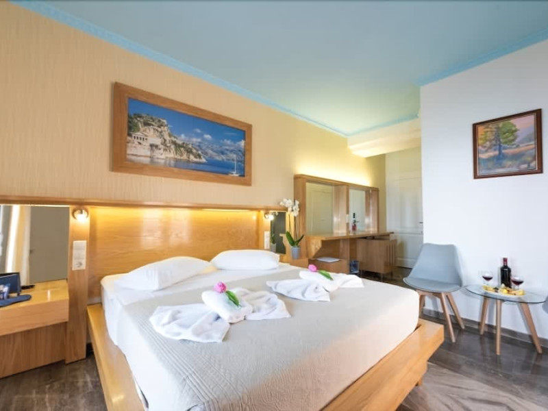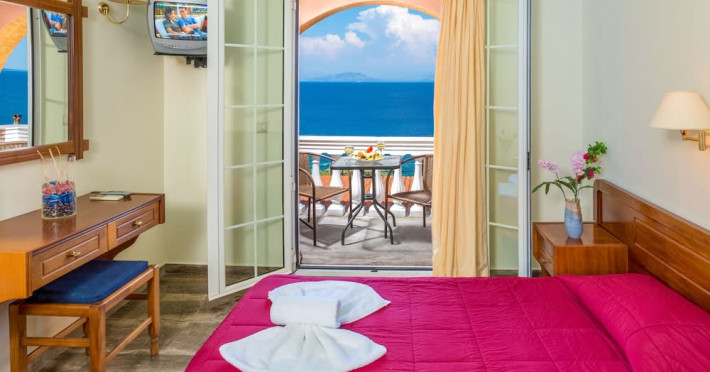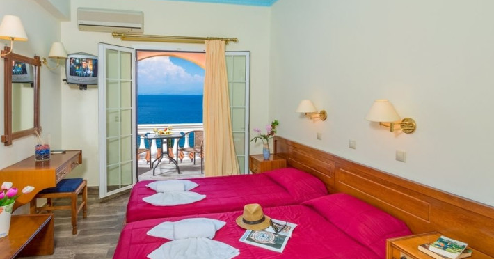 The hotel has 33 simply decorated but comfortable guest rooms. Each room has en suite facilities, air conditioning and a balcony, many of which have sea views.
