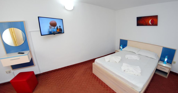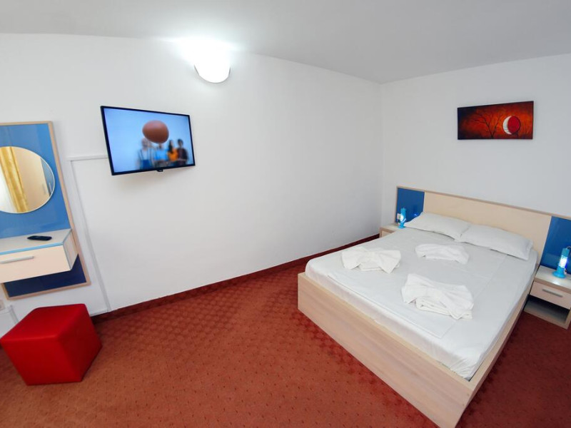 The Liliacul villa complex is located near the Olympic Hotel, 400 meters from the sandy beach and 350 meters from Lake Neptune. Hotel facilities: Villas with 4 apartments with 2 rooms each, Free Internet - wireless, Childrens playground, Olympic Beach equipped with sunbeds, umbrellas and childrens playground on the beach, Playground on the beach, Guarded parking 24 hours - free of charge; Meal services are provided by the Olympic Restaurant located nearby, All Inclusive, access to billiards, table tennis, free fitness depending on availability Room facilities: sofa bed or two sofa beds, coffee table, TV table, multifunctional body, cable TV, refrigerator; bathroom with shower, terrace for ground floor apartments, furnished with table and chairs.Datorita dinamicitatii domeniului disponibilitatea ofertelor se modifica de la un moment la altul. De aceea ofertele sunt valabile in limita locurilor disponibile. Agentia nu este responsabila pentru eventualele neconcordante care pot aparea intre informatiile privind tarifele si alte detalii din site si informatiile primite in agentie. In aceste cazuri vor avea prioritate, intotdeauna, informatiile primite in agentie.