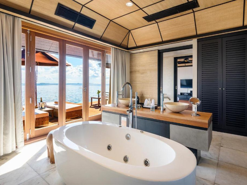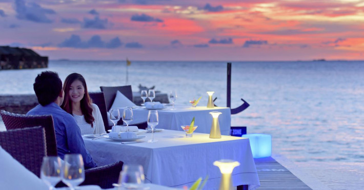 Restaurantul in aer liber Lily Maa are vedere panoramică la lagună si serveste bufete pe tot parcursul zilei, alături de o selectie de 70 de tipuri de vin premium. Restaurantul Tamarind oferă preparate ce combină tradițiile culinare indiană si chineză, iar la The Wave puteți savura homar proaspăt. Este disponibil si un mic dejun chinezesc.