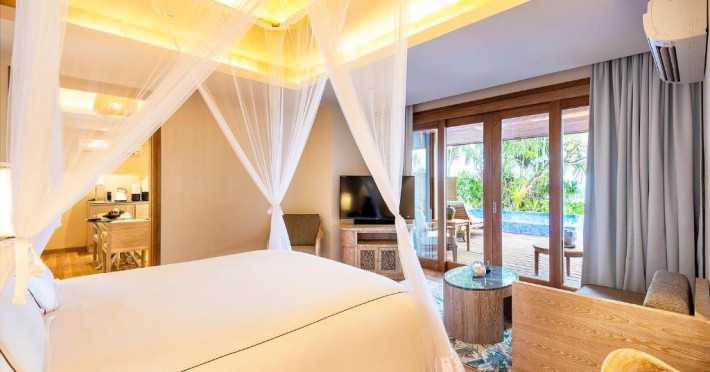 Toate suitele si vilele sunt dotate cu aer conditionat, TV cu ecran plat cu canale prin satelit si sistem home theatre și beneficiază de o terasă privată. De asemenea, acestea includ un aparat Nespresso, facilităti pentru prepararea de ceai, un seif si un minibar. Baia privată este prevăzută cu duș, cadă spa, set dentar si papuci. Oaspeții pot viziona canale TV chineze prin cablu si au la dispoziție ziare in limba chineză.