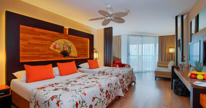 Limak Lara Deluxe Hotel & Resort este construit cu influenta asiatica in celebra plaja Lara-Kundu, Antalya. Resortul are o piscina vasta si o zona de plaja cu nisip, cu un program grozav de divertisment pe tot parcursul sezonului de vacanta. Se afla in zona Lara, la 13 km de Aeroportul International Antalya si la 25 km de centru orasului Antalya. Limak Lara Deluxe Hotel & Resort ofera 4 restaurante à la carte si un centru spa extins. Tuturor oaspetilor li se ofera beneficii speciale, cum ar fi cos cu fructe si o sticla de vin la sosire, serviciu de calcatorie gratuit, oferte speciale la SPA si restaurante. IMPORTANT: Descrierea hotelului se bazeaza pe detaliile disponibile la momentul pregatirii tarifelor pentru sezonul turistic ce urmeaza a se desfasura si are caracter pur informativ. Hotelul poate aduce modificari de structura, denumiri camere, tip serivicii incluse/neincluse si altele, fara a notifica in prealabil. Pentru informatiile oficiale va rugam sa consultati website-ul hotelului.IMPORTANT