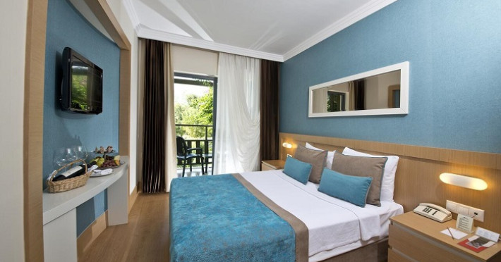 Hotelul are un numar total de 820 camere: camere standard in cladirea principala (28 mp, un dormitor, o baie, vedere directa la mare, vedere partiala la mare si piscina, max 2+1pax), cladirea Arycanda (28 –32 mp, un dormitor, o baie, vedere la mare si piscina, max.2+2pax), camere Garden standard (28–32 mp, un dormitor si o baie, max.2+2pax, localizate in zona de gradina), Limra Park (camere park, sunt localizate peste strada si au categoria de 4*, un dormitor, o baie, max.2+2pax), camere Jacuzzi studio care se afla numai in cladirea principala, camere family numai in partea de gradina - Garden (39 mp, 2+2pax, doua dormitoare cu usa intre ele, o baie). Toate camerele au balcon sau terasa cu vedere la mare sau la gradina, baie privata cu cada, uscator de par, telefon in baie, aer conditionat centralizat cu program in functie de conditiile meteo, telefon direct, podea laminata, seif, mini bar (bauturi racoritoare, apa si bere realimentat zilnic), TV prin satelit, conexiune internet WI- FI.
