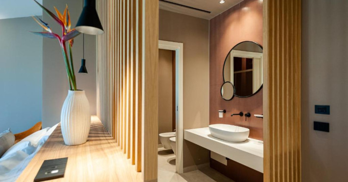 Cazare confortabilă: Limen Wellness Hotel & Spa din Campofelice di Roccella oferă camere spațioase cu aer condiționat, băi private și vedere la munte. Fiecare cameră include birou, televizor și WiFi gratuit.
