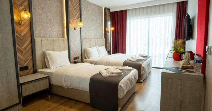 Take in the views from a rooftop terrace and make use of amenities such as complimentary wireless internet access and barbecue grills. Additional features at this hotel include a banquet hall and a vending machine.. Featured amenities include a 24-hour front desk, an elevator, and coffee/tea in a common area. A roundtrip airport shuttle is provided for a surcharge (available 24 hours)..Optional fees: Airport shuttle fee: TRY 4 per room (roundtrip) Airport shuttle fee per child: TRY 2 (roundtrip), (from 1 to 18 years old) The above list may not be comprehensive. Fees and deposits may not include tax and are subject to change. . Policies: Cashless payment methods are available for all transactions. Contactless check-in and contactless check-out are available. . Instructions: Extra-person charges may apply and vary depending on property policy Government-issued photo identification and a credit card, debit card, or cash deposit may be required at check-in for incidental charges Special requests are subject to availability upon check-in and may incur additional charges; special requests cannot be guaranteed This property accepts credit cards and debit cards; cash is not accepted Cashless transactions are available . Special instructions: Front desk staff will greet guests on arrival at the property.. Minimum age: 18. Check in from: 12:30 PM. Check in to: anytime. . Check out: 11:30 AM.Take in the views from a rooftop terrace and make use of amenities such as complimentary wireless internet access and barbecue grills. Additional features at this hotel include a banquet hall and a vending machine.. Featured amenities include a 24-hour front desk, an elevator, and coffee/tea in a common area. A roundtrip airport shuttle is provided for a surcharge (available 24 hours)..Optional fees: Airport shuttle fee: TRY 4 per room (roundtrip) Airport shuttle fee per child: TRY 2 (roundtrip), (from 1 to 18 years old) The above list may not be comprehensive. Fees and deposits may not include tax and are subject to change. . Policies: Cashless payment methods are available for all transactions. Contactless check-in and contactless check-out are available. . Instructions: Extra-person charges may apply and vary depending on property policy Government-issued photo identification and a credit card, debit card, or cash deposit may be required at check-in for incidental charges Special requests are subject to availability upon check-in and may incur additional charges; special requests cannot be guaranteed This property accepts credit cards and debit cards; cash is not accepted Cashless transactions are available . Special instructions: Front desk staff will greet guests on arrival at the property.. Minimum age: 18. Check in from: 12:30 PM. Check in to: anytime. . Check out: 11:30 AM.