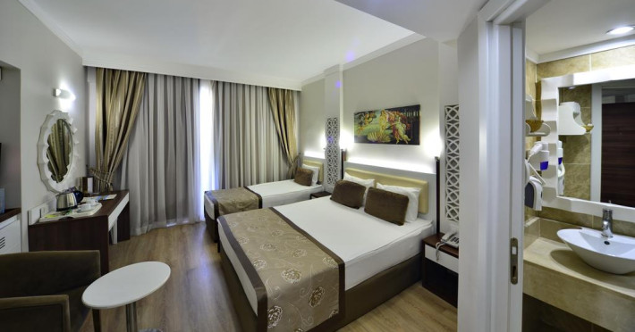 Linda Resort Hotel se află la 5,5 km de Side și la 60 km de Aeroportul Antalya. La cerere proprietatea organizează transfer la/de la aeroport contra cost.
