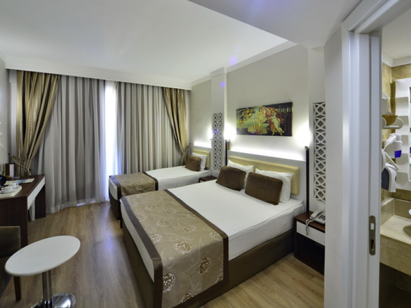 The hotel has 6 suites, 20 single rooms and 204 double rooms, which are located on 5 storeys and are reachable by lift. The reception desk is open round the clock. A baggage storage service, a safe and a currency exchange service are available. Wireless internet access allows guests to stay connected while on holiday. The tour desk offers assistance with booking excursions. The hotel offers various facilities for guests with disabilities. Wheelchair-accessible facilities are available. Film fans will find plenty of lights, camera, action at the cinema. A number of shops, including a supermarket and souvenir shop, are great for shopping or just browsing. The grounds of the hotel feature a playground and a lovely garden. Additional amenities include a TV room and a playroom. Guests arriving by car can park their vehicles in the car park. Other services include a 24-hour security service, a childcare service, a car hire service, medical assistance, a transfer service, room service (for a fee), a laundry service, a hairdresser, a hotel doctor and a hotel shuttle bus. A bicycle hire service provides all the necessary equipment for exploring the surrounding area. A fax machine is available for guests business needs.Datorita dinamicitatii domeniului disponibilitatea ofertelor se modifica de la un moment la altul. De aceea ofertele sunt valabile in limita locurilor disponibile. Agentia nu este responsabila pentru eventualele neconcordante care pot aparea intre informatiile privind tarifele si alte detalii din site si informatiile primite in agentie. In aceste cazuri vor avea prioritate, intotdeauna, informatiile primite in agentie.