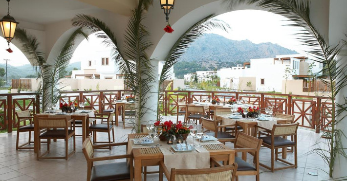 La Lindian Village oaspeții au la dispoziție 5 restaurante unde pot savura mâncăruri delicioase, în stil bufet sau à la carte. Preparate din bucătăria internațională, grecească și mediteraneană așteaptă să fie degustate în fiecare zi la micul dejun, prânz și cină. Masa poate fi servită atât în interior, cît si în aer liber, pe terasă, în funcție de vreme. Oaspeţii pot avea diverse băuturi răcoritoare sau alcoolice la bar. Pentru cei cu anumite nevoi de nutriție, Lindian Village oferă meniuri pentru diete speciale.