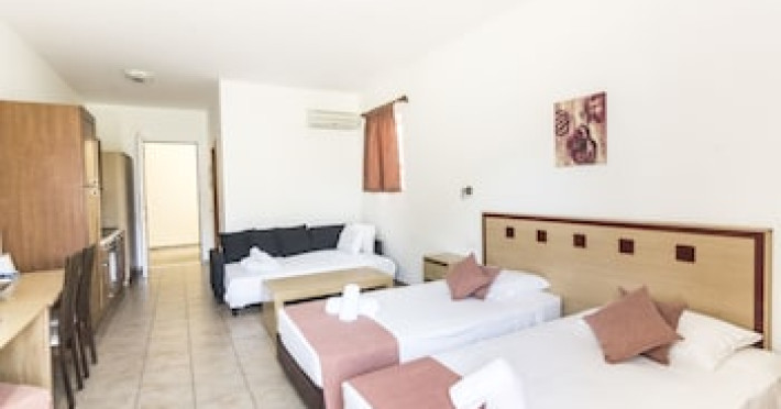 Near Tomb of Cleobulus. When you stay at Lindos Blue Sky in Rhodes, youll be near the beach, within a 15-minute walk of Tomb of Cleobulus and Lindos Beach. This hotel is 3.5 mi (5.6 km) from Pefkos Beach and 14.3 mi (23.1 km) from Tsambika Beach. Make yourself at home in one of the 11 guestrooms, featuring kitchens with full-sized refrigerators/freezers and ovens. Rooms have private furnished balconies. 24-inch Smart televisions with satellite programming provide entertainment, while complimentary wireless Internet access keeps you connected. Conveniences include phones, as well as safes and desks. Grab a bite from the grocery/convenience store serving guests of Lindos Blue Sky. Continental breakfasts are available daily from 8:30 AM to 11 AM for a fee. Take in the views from a terrace and a garden and make use of amenities such as complimentary wireless Internet access. Additional features at this hotel include babysitting (surcharge), tour/ticket assistance, and a picnic area.Datorita dinamicitatii domeniului disponibilitatea ofertelor se modifica de la un moment la altul. De aceea ofertele sunt valabile in limita locurilor disponibile. Agentia nu este responsabila pentru eventualele neconcordante care pot aparea intre informatiile privind tarifele si alte detalii din site si informatiile primite in agentie. In aceste cazuri vor avea prioritate, intotdeauna, informatiile primite in agentie.
