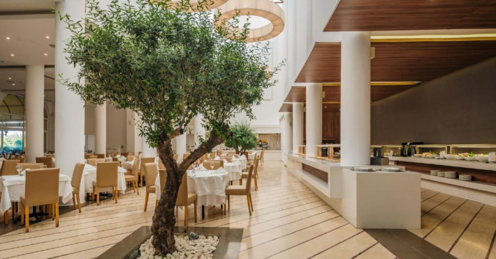 Restaurantele tip bufet ale complexului Lindos servesc preparate din bucătăria mediteraneană, asiatică si internatională. Oaspetii pot savura o băutură in barul elegant din hol sau in timp ce se relaxează pe sezlongurile de langă piscină.