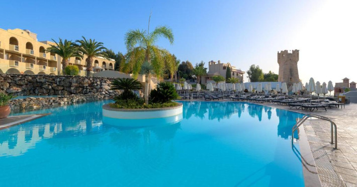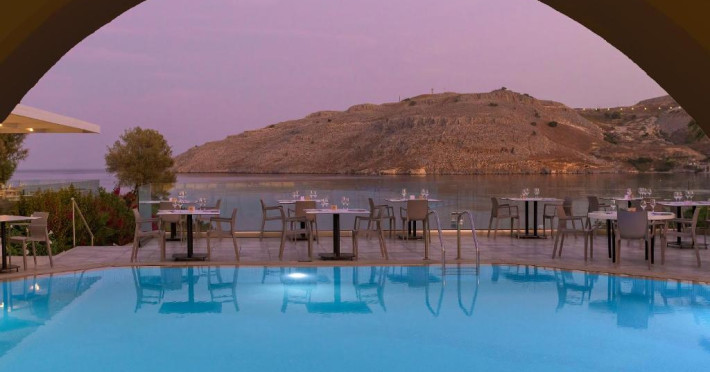 Acest complex in stil colonial, inconjurat de grădini de palmieri, este construit langă o plajă minunată, la 5 km de Lindos. Oferă 5 piscine in aer liber, 1 teren de tenis si 3 restaurante tematice.