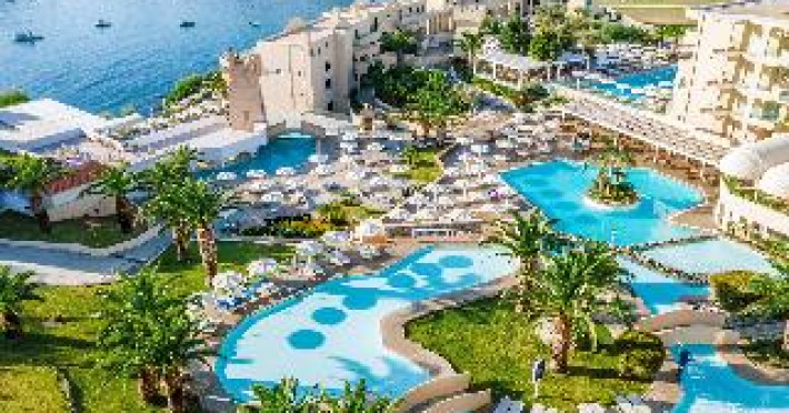 Near Vlycha Beach. Located in Rhodes, Lindos Royal - All Inclusive is by the sea, a 1-minute drive from Vlycha Beach and 6 minutes from Kalathos Beach. This 5-star property is 6 mi (9.7 km) from Pefkos Beach and 12 mi (19.4 km) from Tsambika Beach. Make yourself at home in one of the 387 air-conditioned rooms featuring refrigerators and LCD televisions. Rooms have private furnished balconies or patios. Complimentary wireless Internet access keeps you connected, and satellite programming is available for your entertainment. Bathrooms have separate bathtubs and showers and hair dryers. This property is all inclusive. Rates include meals and beverages at onsite dining establishments. Charges may be applied for dining at some restaurants, special dinners and dishes, some beverages, and other amenities. Satisfy your appetite at Main Restaurant, one of the propertys 3 restaurants. Relax with a refreshing drink from the bar/lounge or one of the 2 poolside bars. A complimentary buffet breakfast is served daily from 7:00 AM to 10:30 AM. Dip into one of the 3 outdoor swimming pools or enjoy other recreational amenities including a waterslide and bicycles to rent. This property also features complimentary wireless Internet access, concierge services, and an arcade/game room.Datorita dinamicitatii domeniului disponibilitatea ofertelor se modifica de la un moment la altul. De aceea ofertele sunt valabile in limita locurilor disponibile. Agentia nu este responsabila pentru eventualele neconcordante care pot aparea intre informatiile privind tarifele si alte detalii din site si informatiile primite in agentie. In aceste cazuri vor avea prioritate, intotdeauna, informatiile primite in agentie.