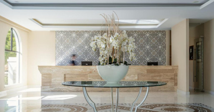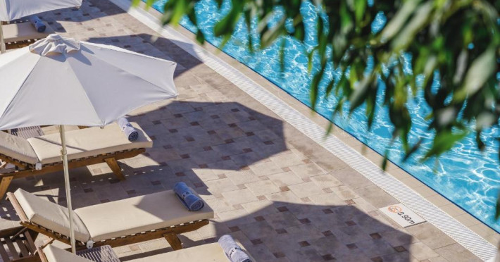 Acest complex hotelier de lux, destinat exclusiv adulților, construit in stilul satului grecesc, este format din clădirea principală și 9 clădiri cu trei etaje. Complexul hotelier este situat intr-o grădină mică, minunată, spațioasă, oaspeților li se oferă umbrele de soare și șezlonguri la cele 2 piscine frumoase.