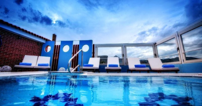 Oaspeții se bucură de facilități precum restaurant, bar, salon, lift, piscină, teren de joacă pentru copii, piscină pentru cei mici și diverse sporturi de apă.