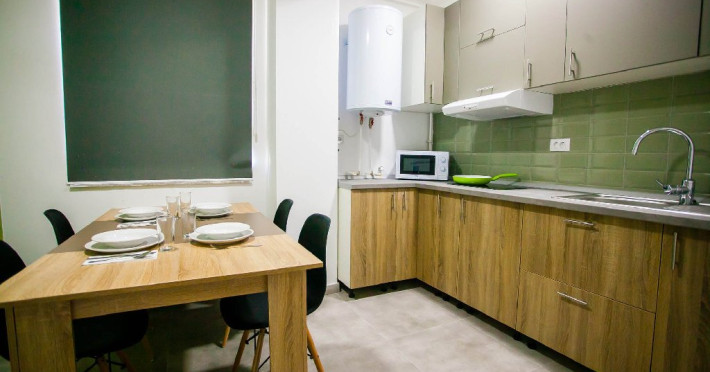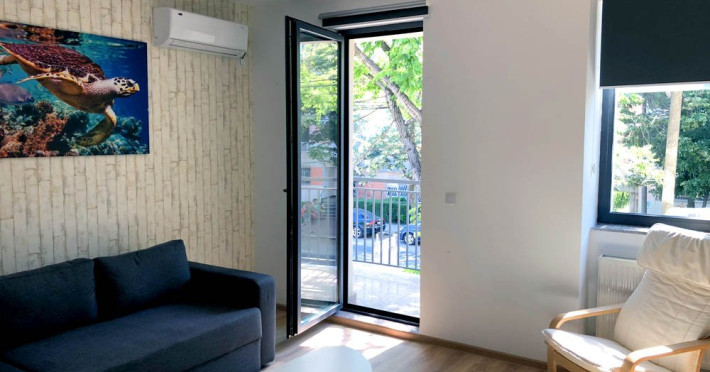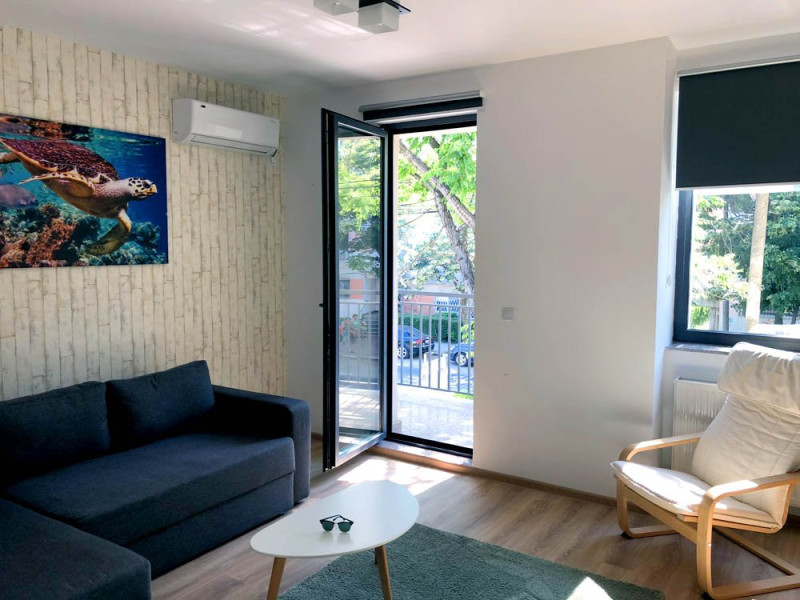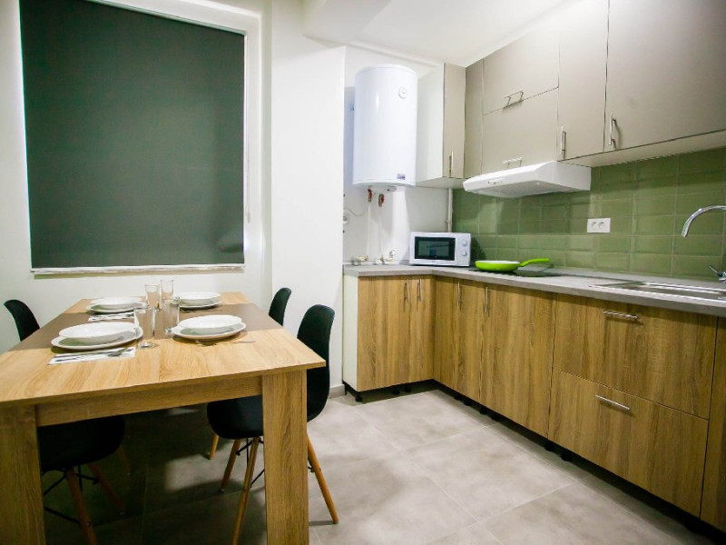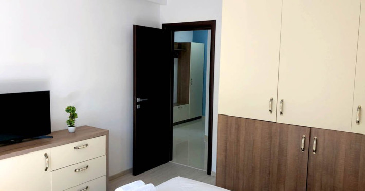 Acest apartament este compus din camera de zi, dormitor, bucatarie, baie cu cabina de dus si balcon. Fiecare camera dispune de aer condtionat si TV LCD cu transmisie prin cablu. Internet Wi-Fi este disponibil in intregul apartament. Bucataria ofera un spatiu generos atat pentru prepararea cat si pentru servirea mesei si dispune de frigider, plita electrica, hota, cuptor cu microunde precum si de ustensilele necesare pentru prepararea mancarurilor: tigaie, cratita, vesela, tacamuri, boluri, ibric. Exist o baie privat cu dus, iar lenjeria de pat si prosoapele sunt incluse.