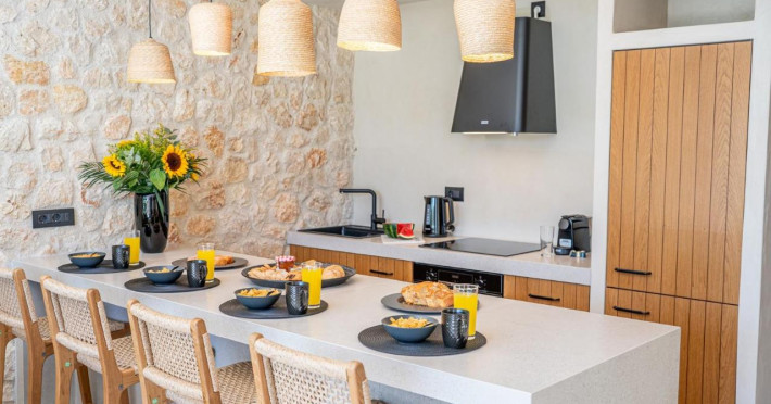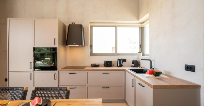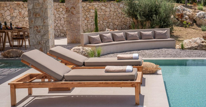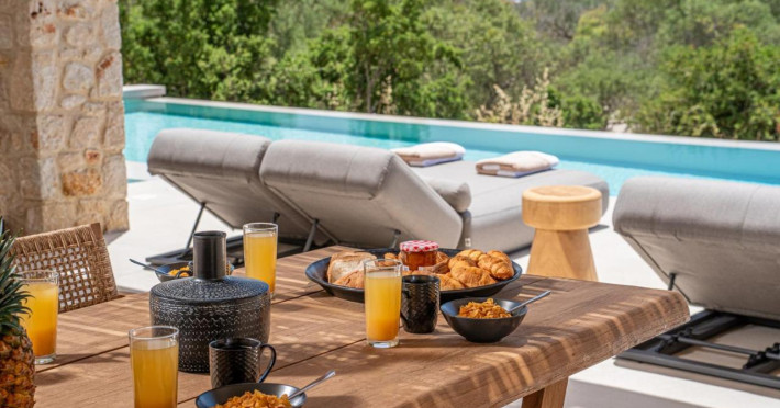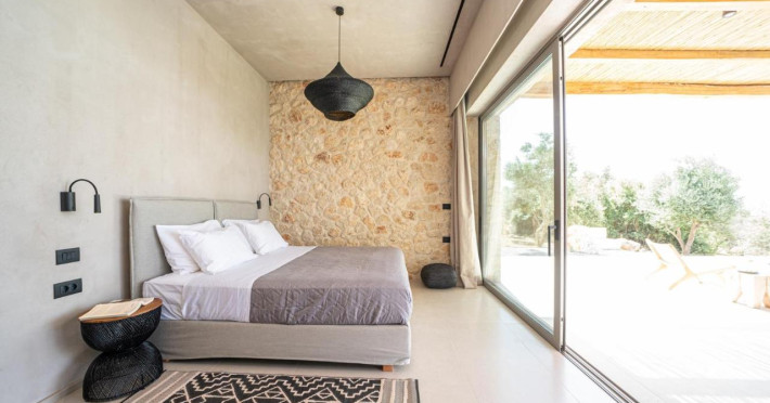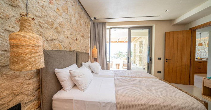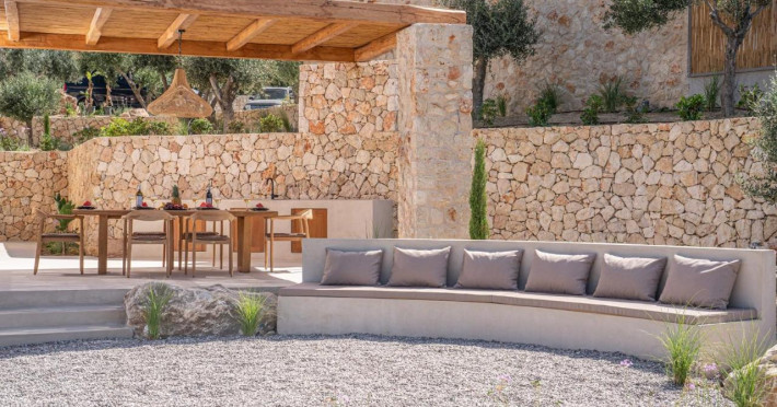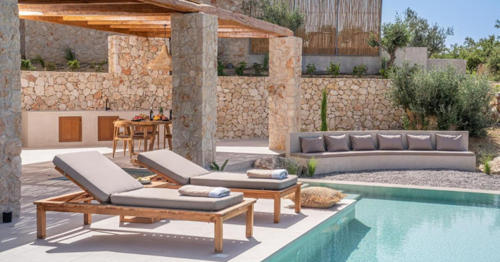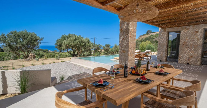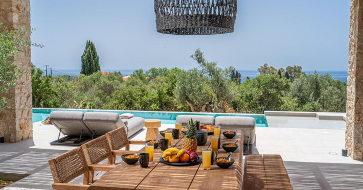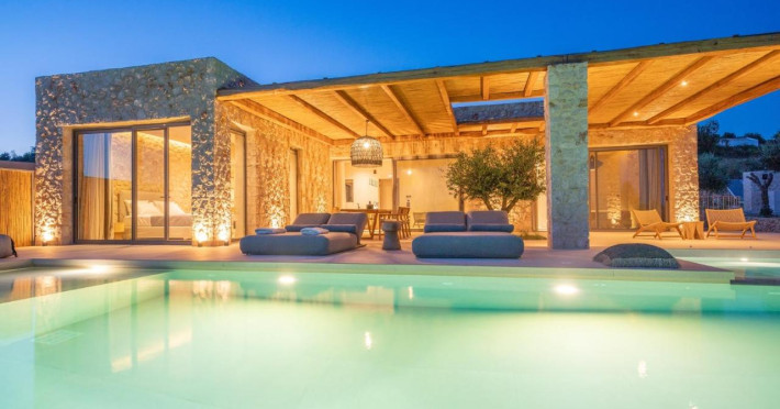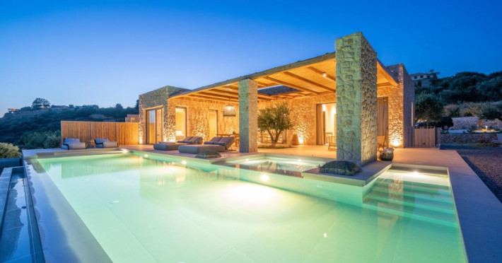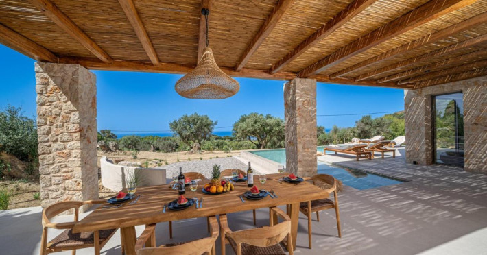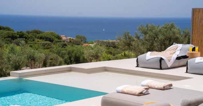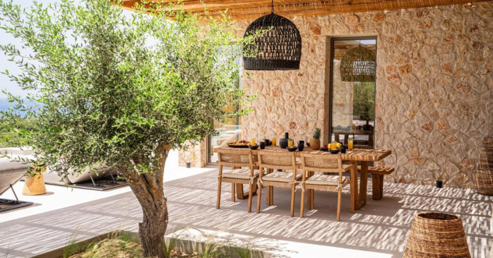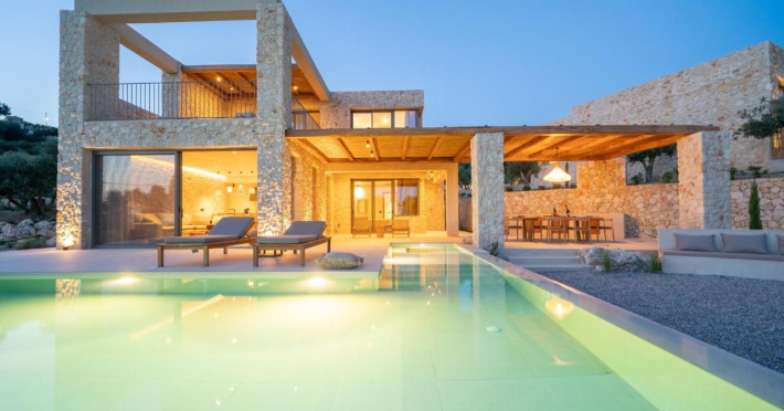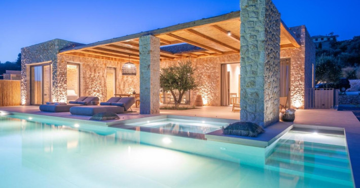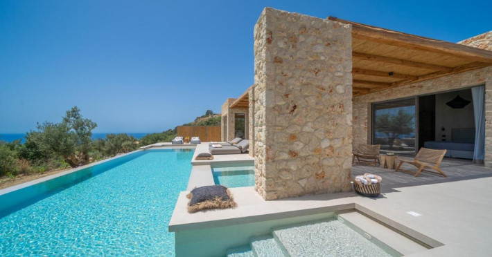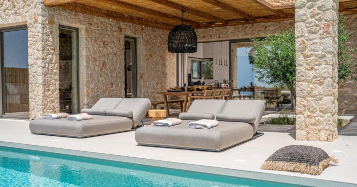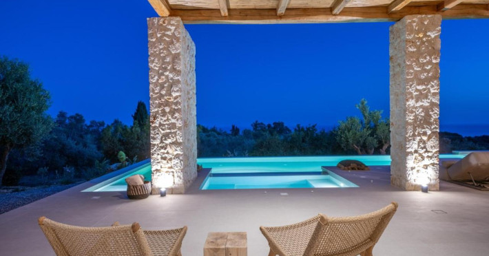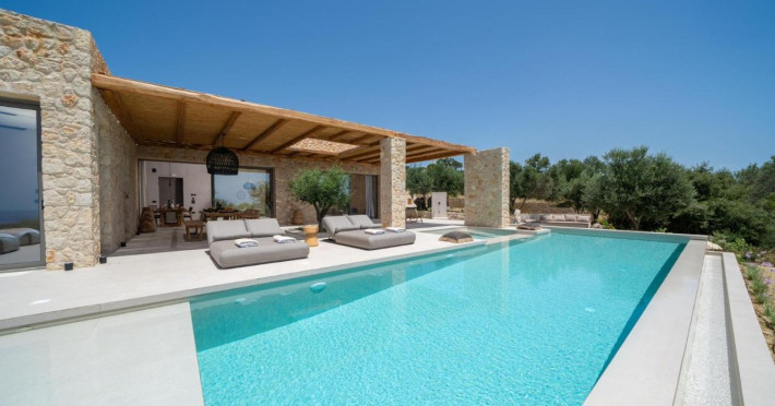 Each opulent villa immediately transports you into the tranquil and artistic world of stone “litho”, complimented harmoniously with a soft modern colour palette and polished concrete finishes blending effortlessly into the surrounding area.Perched on an elevated position and affording 180-degree panoramic views overlooking the azure Ionian Sea; Utopia, Euphoria and Armonia villas offer unparalleled elegance. Each of these three unique properties benefit from individually designed and private infinity pools (two of which have integral jacuzzis). All offer uninterrupted and spectacular views of the enchanting valleys and natural surroundings.The meandering pathways guide you through the olive grove and extensive naturally landscaped gardens, allowing you to explore hidden corners and surprising vistas from every angle of Lithos Art Villas. The unique timber pergolas, all sourced from the wonderful chestnut trees nurtured in the famous ‘Aghion Oros’ (also known as Mount Athos and Holy Mountain) region of Greece are covered with natural bamboo. These provide tranquil al fresco areas, offering guests the chance to maximise their time outside and immerse themselves completely into the natural beauty and allure of the surrounding landscape, creating a feeling of being at one with nature.Step inside these impeccably presented villas and you will enter a world of contrasts with modern interiors and boho touches, seamlessly blending contemporary design with elements inspired by the rich cultural tapestry of Greece and celebrating the true art of stone. All areas of Lithos Art Villas are beautifully curated to enhance every second of your stay.Utopia, Euphoria and Armonia are ready to welcome you, promising an unforgettable vacation escape into the world of nature, stone artistry and truly exquisite facilities.