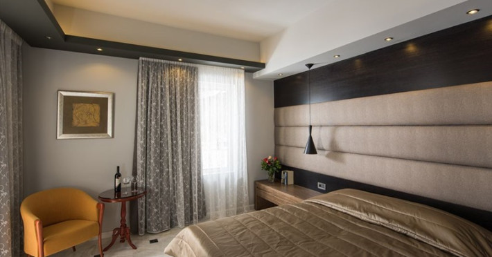 Camerele de la Lito Beach sunt amenajate cu mobilier din lemn în nuanțe închise și pale, oferind o atmosferă reconfortantă.
