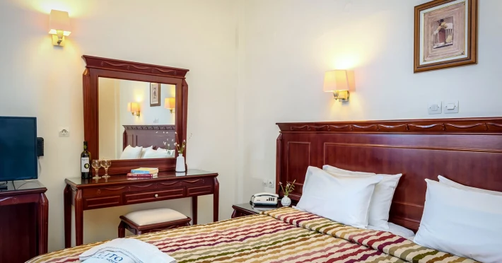 Unitatea de cazare dispune de 50 de camere, toate dotate cu minibar/frigider, TV, acces la wi-fi, aer conditionat, seif, aparat de cafea si baie proprie. Unele camere pot avea balcon.