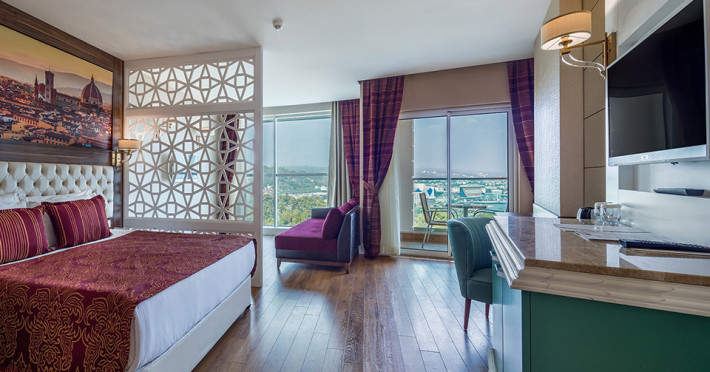 Locatie: La 100 km distanță de aeroportul Antalya, la 35 km de centrul orașului Alanya, la 70 km de aeroportul Gazipaşa și la 35 km de orașul antic Side. Antalya Airport: 90 km Centrul orașului Antalya: 100 km Aeroportul Gazipaşa: 70 km (Alanya) Locația și lungimea plajei: Plajă privată și parc acvatic cu o lungime de 150 m Cele mai apropiate centre urbane: 30 km (Alanya), 7 km (Avsallar) Opțiuni de transport: Transfer VIP, Autobuz, Taxă Facilitati hotel: Restaurant: Restaurant principal, patiserie, snack bar, Gozleme Evi, A’la Carte Dinner, Ottoman A’la Carte, Sushi A’la Carte, Fish A’la Carte Baruri: Barul din hol și de pe terasă Barul de lounge deschis 24 de ore Bar de serviciu Bar la piscină Bar pe plajă Bar disco Inclus: Activități de animație Mini bibliotecă Internet wireless Scaun cu rotile Mini golf Șah Cu extra plata: Boutique Magazin de piele Magazin alimentar Salon de coafură pentru femei și bărbați Curățătorie și spălătorie Magazin de bijuterii Magazin de argint Optică și ochelari Magazin de suveniruri Fotograf Doctor + Asistent medical Cabana de pe plajă Servicii de cameră Servicii de telefon și fax Cufăr de valori (pe plajă) Facilitate camera: Cheie electronică Șlapi Cosmetice de baie Oglindă pentru bărbierit / machiaj Uscător de păr Cabină de duș Seif digital Wi-Fi internet Telefon direct TV LCD Aer condiționat Șezlong sau scaun la balcon sau terasă Zonă pentru bagaje Divertisment Sport și Activități Incluse: • Grupuri de dans celebre din diverse țări ale lumii spectacolului • Spectacole de muzică live • Nopți de petrecere • Jocuri la piscină • Turnee zilnice • Spectacole de acrobatie • Activități culturale • Jocuri speciale • Programe de animație seara • Disco • Activități sportive terestre • Happy hour pe plajă (de 3 ori pe săptămână) Gratuit • Dart • Tenis de masă • Volei pe plajă • Tir cu arcul • Tragere (Pușcă cu aer) • Aerobic • Gimnastică în apă • Polo acvatic • Boccia • Cursuri de yoga • Pilates • Centru de fitness Contra cost • Parasailing • Sporturi nautice cu motor • Catamaran (Licențiat) • Schi nautic • Cursuri de scufundări • Banană • Jet ski • Cursuri de surf și catamaran • Ringo Contra cost • Lecții private • Cursuri de dans • Play Station • Biliard Aquapark: 3 tobogane Piscină cu tobogan (încălzită în funcție de condițiile meteorologice). Piscine: Piscină în aer liber Piscină interioară Piscine pentru copii: Piscină în aer liber Piscină interioară Spa și Wellness: Inclus: • Piscină interioară • Centru de fitness • Baie turcească • Saună • Baie de aburi • Zonă de relaxare Contracost: • Masaje și servicii de baie turcească • Îngrijirea pielii și a corpului • Grădină cu jacuzzi • Manichiură - Pedichiură • Zonă VIP • Magazin de frumusețe Spa • Cameră de fricțiune • Sală de terapie • 2 suite-uri spa • Bar cu vitamineLocalizare