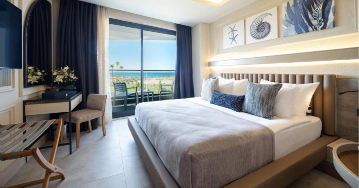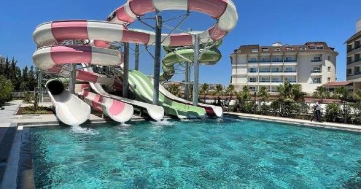 Facilitati hotel: Oaspetii pot beneficia de restaurant principal, restaurant A la Carte, baruri, piscine exterioare, piscina interioara, tobogane, sezlonguri si umbrele, programe de animatie si divertisment, centru fitness, centru spa, volei, pilates, yoga.
