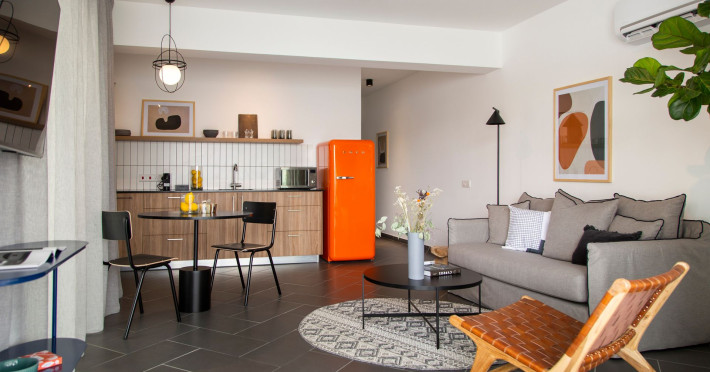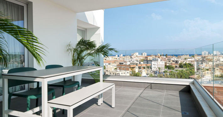 LIV is your modern urban Aparthotel, with amazing and newly designed apartments, fully furnished and equipped, for a unique local travelling experience in Larnaca. As you enter LIV building, you will be welcomed in a green, lush garden area, and from there to our amazing sea-view roof bar with Jacuzzi to start your trip with a drink! LIV is located only a few minutes from all the sites of the city, between the trendy Zinon Kiton st. and the old castle, where you can find all the boutiques, bars, cafes and clubs. LIV's standards of service, hygiene and cleanliness are very strict, out of our commitment to the health and wellbeing of our guests. All our services have undergone a digitization process for maximum convenience – you can check-in, pay, and receive service from the reception desk via WhatsApp – available throughout the day.