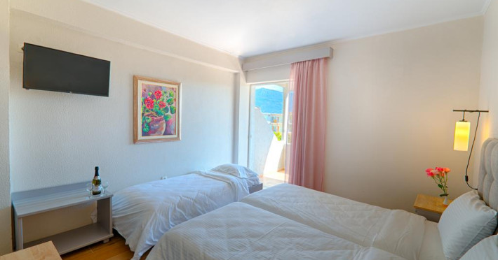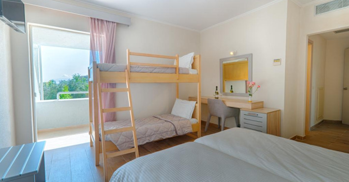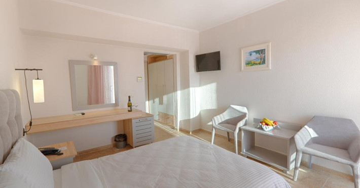 Camerele de la Livadi Nafsika Hotel au în dotare aer condiționat și Tv. Camerele au balcon cu vedere la grădină. În camere există baie cu cadă sau duș prevăzută cu foehn. Curățenia in cameră se face zilnic.