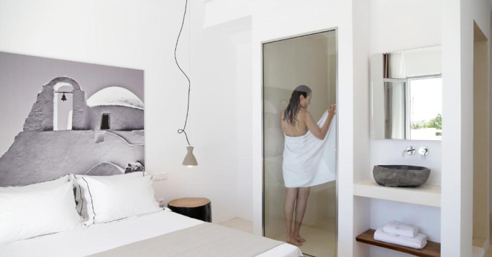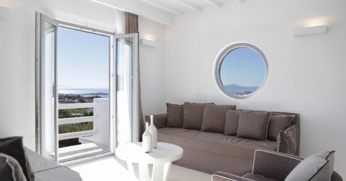 Unitățile de cazare de la Hotelul Livin Mykonos sunt amenajate in stil cicladic tradițional, cu influențe moderne. Dotările includ aer condiționat, minibar și TV cu ecran plat, iar unele unități au zonă de living.