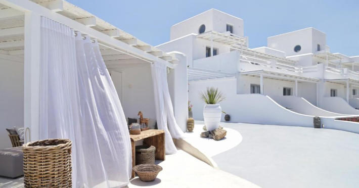 Hotelul Livin Mykonos beneficiază de o locație convenabilă la doar 1,1 km de orașul Mykonos și la 3 km de plaja populară Psarrou. Hotelul are o piscină in aer liber cu bar și oferă camere și suite elegante cu balcon privat cu vedere la grădina luxuriantă sau la orașul Mykonos.