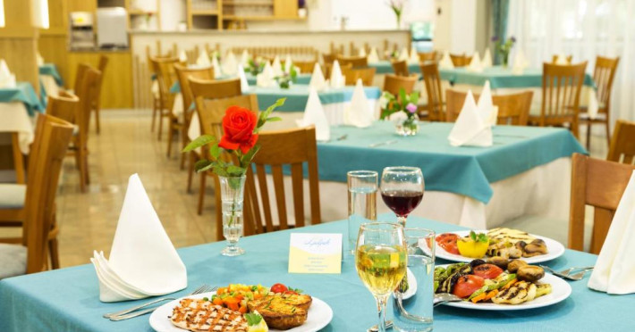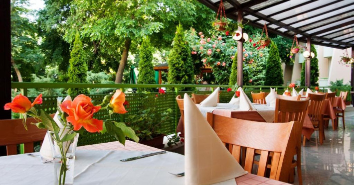 Restaurantul Ljujak servește preparate internaționale și specialități locale. Oaspeții pot savura cocktail clasice și gustări ușoare la barul de la piscină, iar in fiecare zi este oferit un mic dejun consistent. Opțiunea all inclusive este disponibilă la un cost suplimentar și include mic dejun tip bufet, pranz și cină, precum și băuturi răcoritoare, băuturi alcoolice locale, vin și bere.