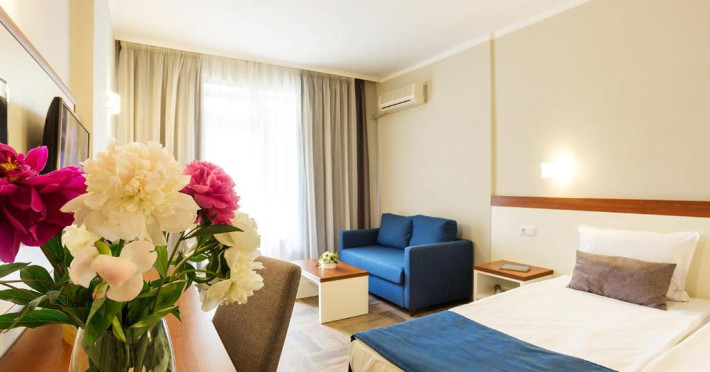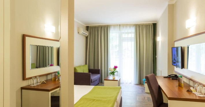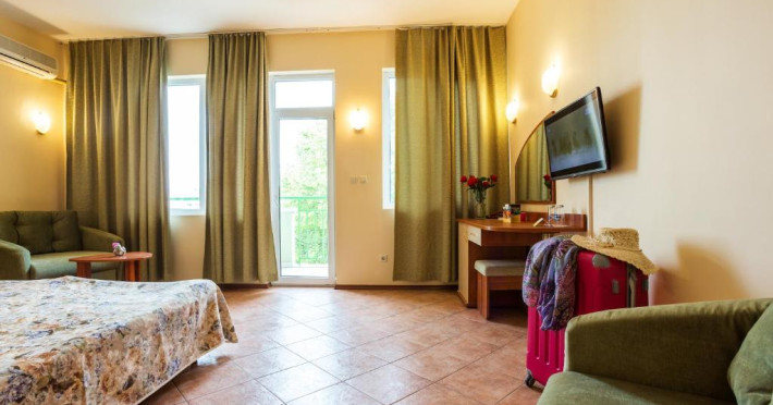 Camerele sunt luminoase și au fiecare balcon privat cu vedere la zona cu verdeață. Toate camerele au aer, zonă de relaxare, TV prin satelit și baie privată modernă.