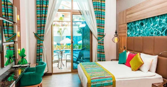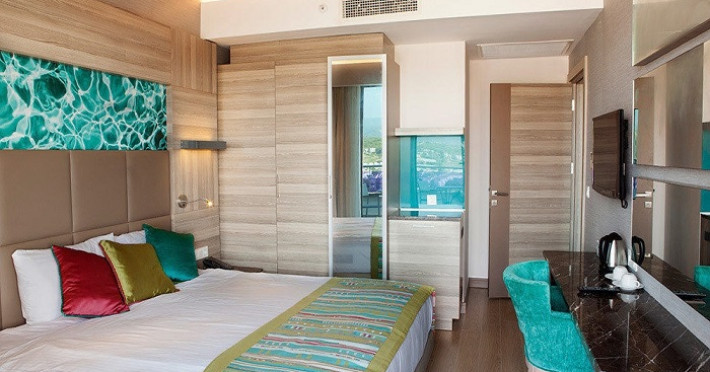 Camerele sunt dotate modern cu: baie cu dus, uscator de par, TV prin satelit, telefon, seif, aer conditionat, balcon, internet wireless gratuit, mini-bar, room service (contra cost). Camerele sunt impartite in felul urmator: 175 standard, 20 pool rooms cu o camera, 37 family rooms cu doua camere, 9 suite rooms cu doua camere.