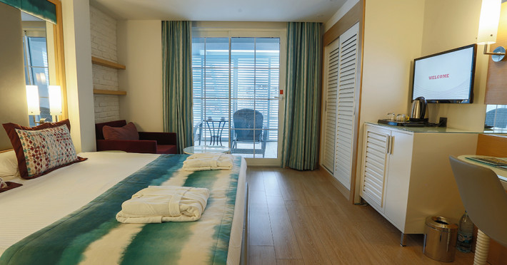 Camerele au balcon cu masă și scaune unde pot fi petrecute momente de relaxare. În camere există baie cu cadă sau duș prevăzută cu foehn. Camerele de la Long Beach Resort Hotel & Spa sunt dotate cu aer condiționat, Tv cu canale prin satelit și seif. Oaspeții au acces gratuit la serviciul Wi-fi în camere. Curățenia in cameră se face zilnic.