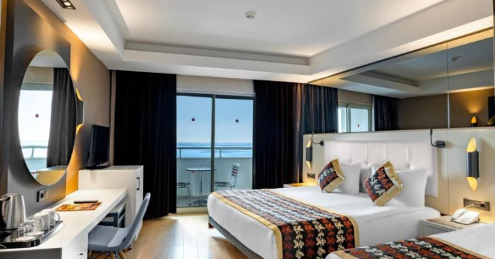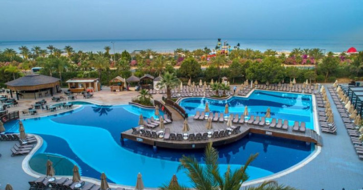 Long Beach Resort & Spa se bucură de o priveliște spectaculoasă către Marea Mediterană, cu apele sale albastre de safir, întinzându-se liniștit pe propria plajă privată, aurie, ce se întinde pe o lungime de 600 de metri, pe frumoasa Rivieră turcească. Acest hotel fabulos servește ca o oază de lux pentru seniori, cupluri și familii, oferind camere atrăgătoare dotate cu facilități moderne și panorame minunate către marea liniștită sau peisajele pitorești ale țărmului.Descriere