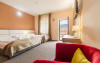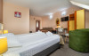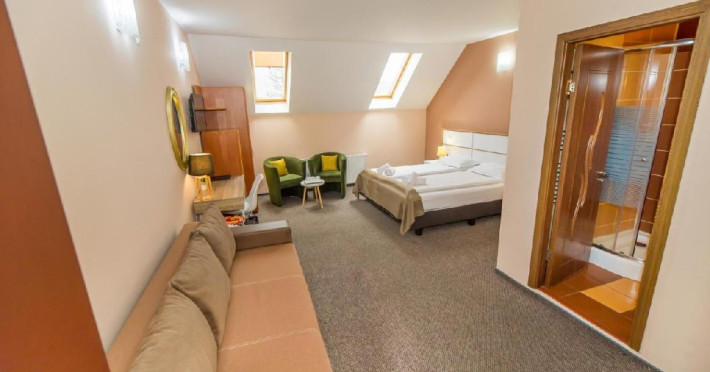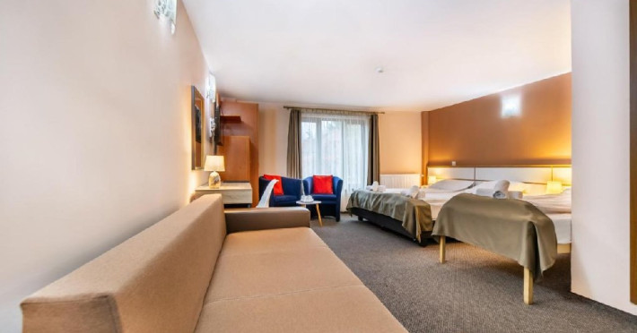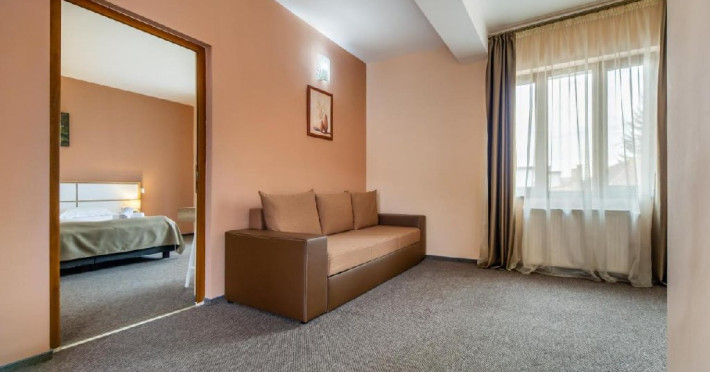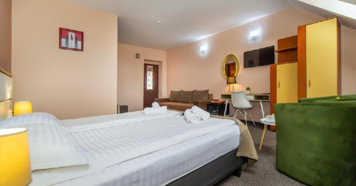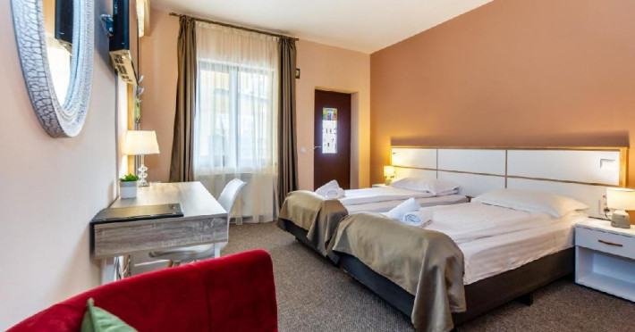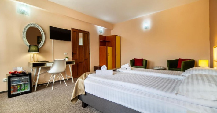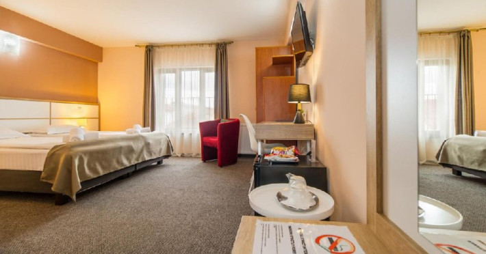 Dotari camera: WiFi Gratuit, TV cu ecran plat, minibar, draperii blackout, calorifere reglabile cu termostat, paturi ergonomice, fotolii si masuta de cafea, birou de lucru, terasa, uscator de par si articole de toaleta.