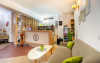 Apartament este ideal pentru o familie de 4 persoane. Acesta dispune de 2 camere cu pat dublu de 180 cm sau doua paturi de o persoana (90 cm) si o canapea extensibila, baie proprie cu cabina de dus. Internet wireless, TV cu ecran plat, minibar, calorifere reglabile, fotolii si masuta de cafea, terasa, uscator de par si articole de toaleta.
