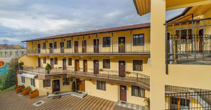 Hotelul ofera pe cele 3 nivele ale sale 56 de locuri de cazare in camere single, duble, camere triple si apartamente cu doua camere semi-decomandate, cu terase exterioare de pe care pot fii admirati, ca si de pe ferestrele camerelor, muntii inconjuratori.