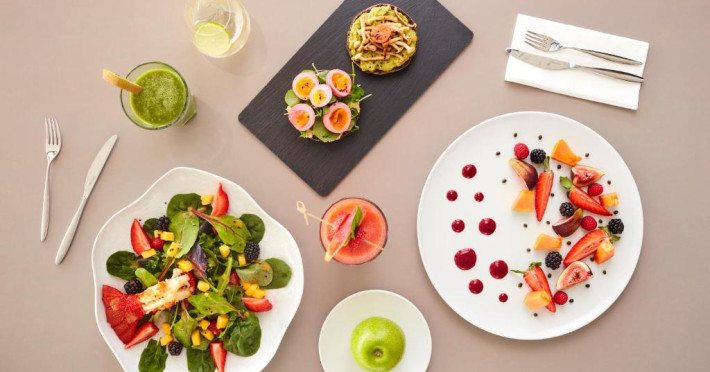 Oaspeții se pot bucura de un mic dejun tip bufet servit la Rooftop Pure Cafe by Longevity, cu vedere panoramică la mare. După o zi petrecută la vizitarea obiectivelor turistice sau la plajă, oaspeții se pot relaxa in Chill Out and Relaxation Tea Lounge. Pentru cină, oaspeții se pot răsfăța cu preparate mediteraneene proaspete servite la Restaurantul Mediterranico.