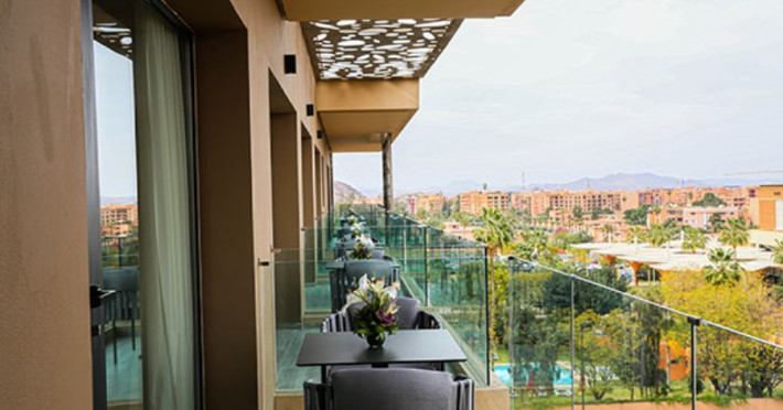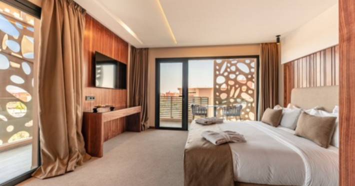 The hotel Longue Vie Hotel Marrakech is approximately 5 km from the airport. There is a shuttle between the hotel and the airport (for a fee). The hotel has a 24h reception, Wi-Fi, internet access, parking spaces as well as a TV lounge with satellite TV. At the pool, parasols are available for free. Furthermore, you can relax outdoors on a terrace. For very young guests, cots can also be provided. The energy supply is 240 Volts. Catering Breakfast is offered from the buffet. Dinner is served à la carte. Sports & Leisure The wellness area offers massages. Additional information The hotel staff speak English, French, Spanish and Arabic.The hotel Longue Vie Hotel Marrakech is approximately 5 km from the airport. There is a shuttle between the hotel and the airport (for a fee). The hotel has a 24h reception, Wi-Fi, internet access, parking spaces as well as a TV lounge with satellite TV. At the pool, parasols are available for free. Furthermore, you can relax outdoors on a terrace. For very young guests, cots can also be provided. The energy supply is 240 Volts. Catering Breakfast is offered from the buffet. Dinner is served à la carte. Sports & Leisure The wellness area offers massages. Additional information The hotel staff speak English, French, Spanish and Arabic.