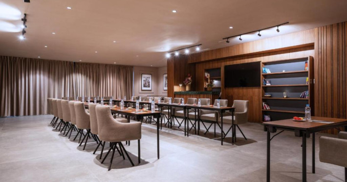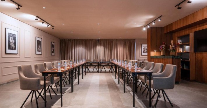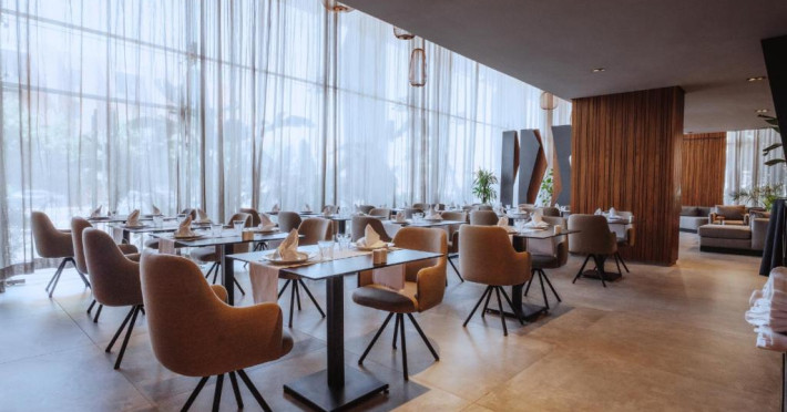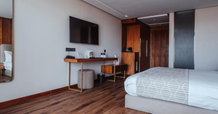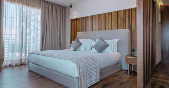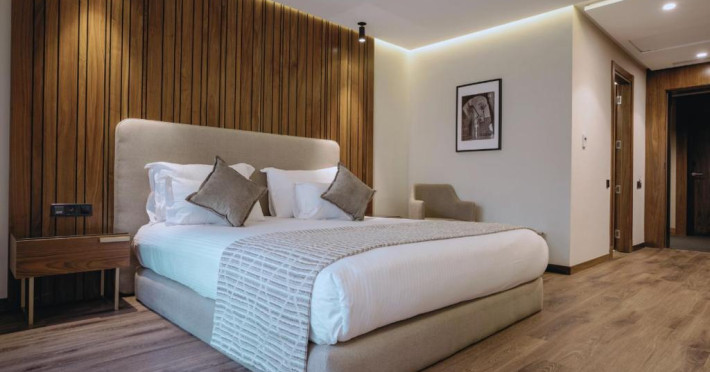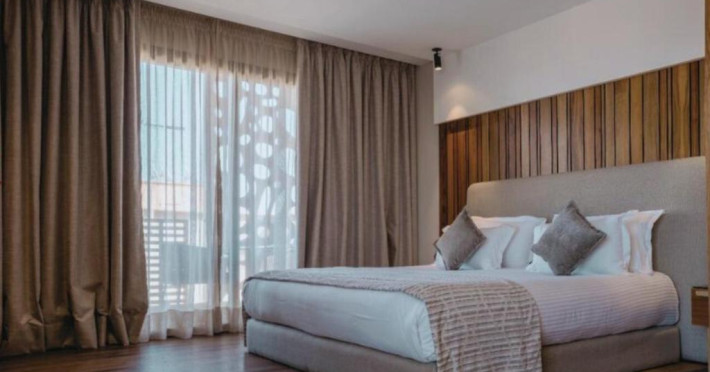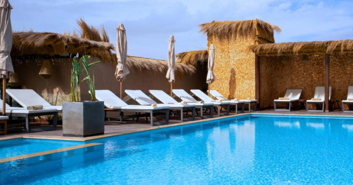 Camerele elegante sunt decorate in stil marocan contemporan, cu accente artizanale locale și balcoane private. Facilitățile hotelului includ o piscină exterioară inconjurată de palmieri, un restaurant cu specific local și internațional, precum și un spa tradițional cu hammam.