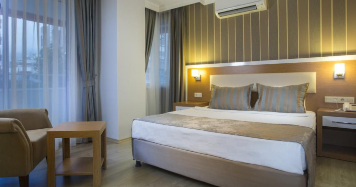 Hotelul este situat in statiunea Alanya, la 120 km de aeroportul din Antalya si la 100 m de faimoasa plaja Cleopatra. Castelul istoric din Antalya si pestera Damlatas se afla la 1 km distanta de hotel. Restaurantul principal serveste preparate internationale in stil bufet si barul hotelul serveste o selectie de bauturi racoritoare. Piscina exterioara este dotata cu sezlonguri si umbrele de soare. Camerele sunt dotate modern cu aer conditionat, uscator de par, televizor si mini bar. Turistii pot face diferite activitati la hotel cum ar fi tenis de masa, biliard si darts.Datorita dinamicitatii domeniului disponibilitatea ofertelor se modifica de la un moment la altul. De aceea ofertele sunt valabile in limita locurilor disponibile. Agentia nu este responsabila pentru eventualele neconcordante care pot aparea intre informatiile privind tarifele si alte detalii din site si informatiile primite in agentie. In aceste cazuri vor avea prioritate, intotdeauna, informatiile primite in agentie.