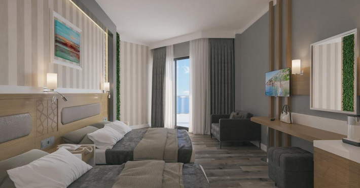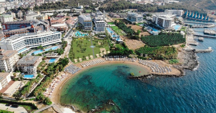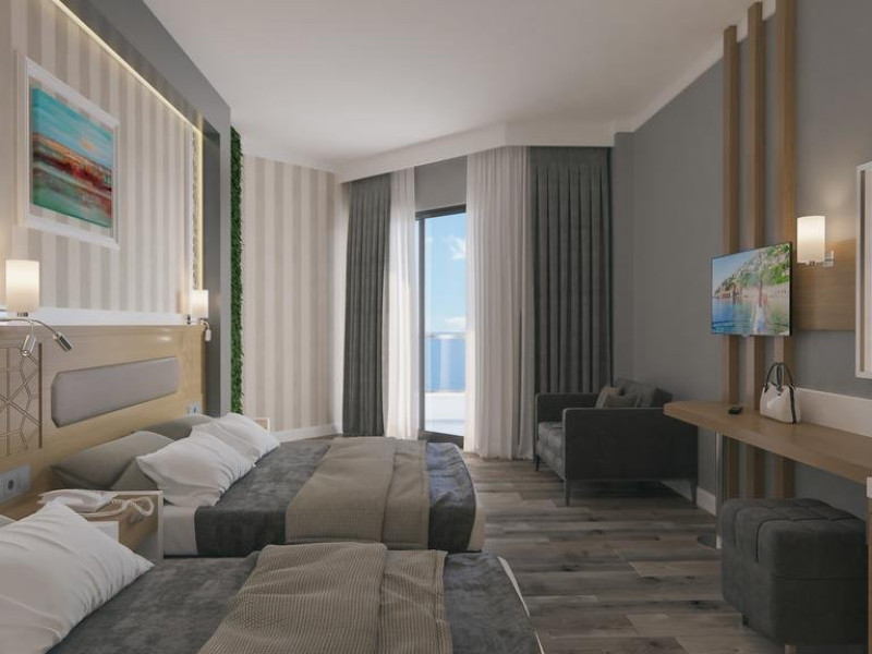 Descriere: Hotel deschis in anul 2020. Este construit pe un teren de 10.000 mp.Localizare: Hotelul este situat pe plaja, in Alanya, la aproximativ 22 km de centrul orasului Alanya si la aproximativ 98 km de Aeroportul Antalya .