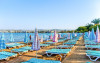 Sezlonguri, umbrele si prosoape de plaja disponibile gratuit.