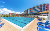 7 piscine, dintre care 2 cu tobogane deschise la ore fixe, Aquapark cu 19 tobogane, 8 piscine pentru copii, piscina interioara (momentan inchisa deschisa in aprilie si octombrie), jacuzzi.