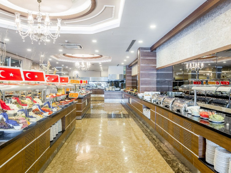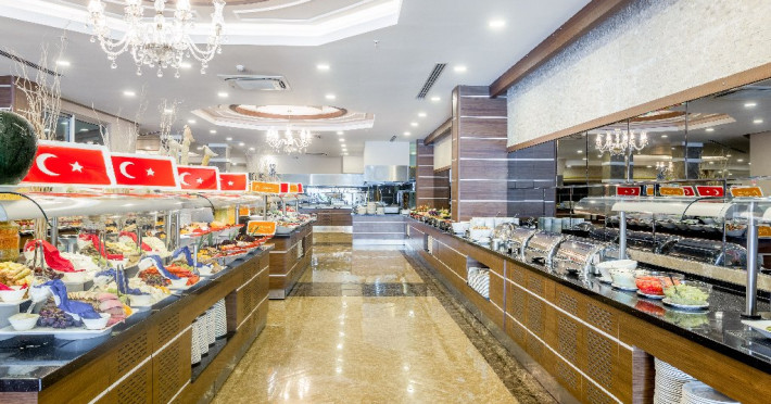 Restaurante: 2 restaurante principale, restaurante ala carte de peste, turceasca (deschise din mai pana in octombrie, contra cost), 11 baruri: la piscine, fast food baruri, in lobby, in discoteca.