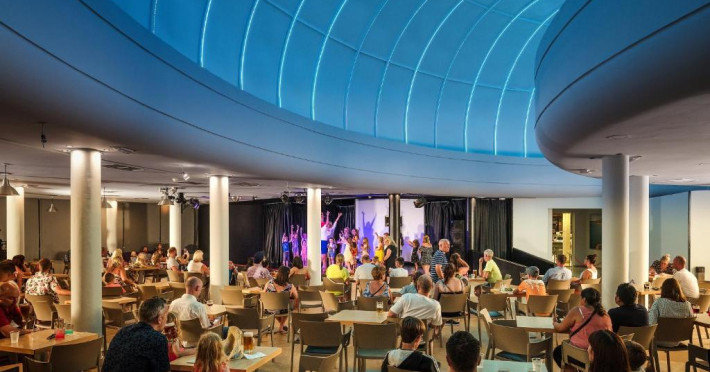 Los Zocos Impressive Lanzarote include un bar langă piscină, care servește gustări, băuturi și inghețată. Restaurantul El Mirador oferă mese tip bufet cu vedere la grădini. Oaspeții pot savura, de asemenea, mese tip bufet și cocktailuri la El Boulevard.