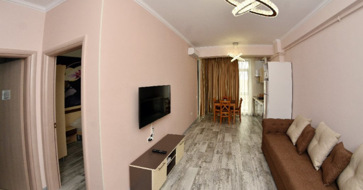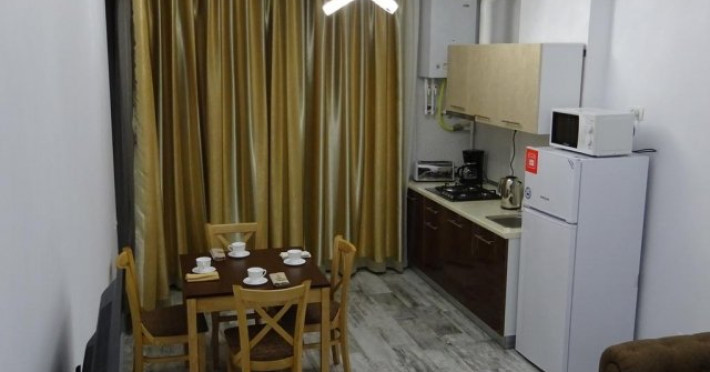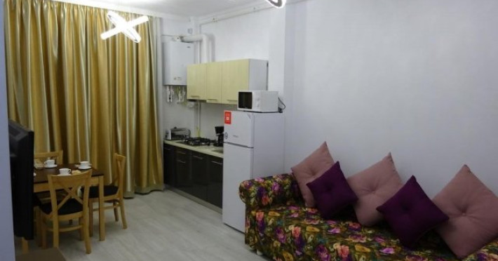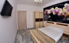 Apartamentul situat la parter: dormitor cu pat matrimonial, living cu canapea extensibila pentru 2 adulti, bucatarie echipata, cuptor cu microunde, frigider, ocupare maxima 4 adulti. NU ARE BALCON.