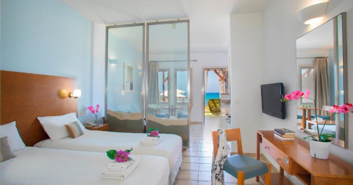 Camerele confortabile de la Louis Althea Beach au pardoseală de gresie/ marmură, aer condiționat, Tv cu canale prin satelit și seif. Fiecare cameră dispune de mașină pentru preparare cafea sau ceai și fierbător Oaspeții au acces gratuit la serviciul Wi-fi în camere. În camere există baie cu cadă sau duș ce are în dotare foehn și articole de toaletă gratuite. Camerele au balcon cu vedere la mare, la piscină sau la grădină. Curățenia in cameră se face zilnic. Există unități de cazare care au chicinetă utilată cu frigider și ustensile de bucătărie. Proprietatea oferă camere pentru familie cu o suprafață mai mare și un număr mai mare de paturi față de cele standard.